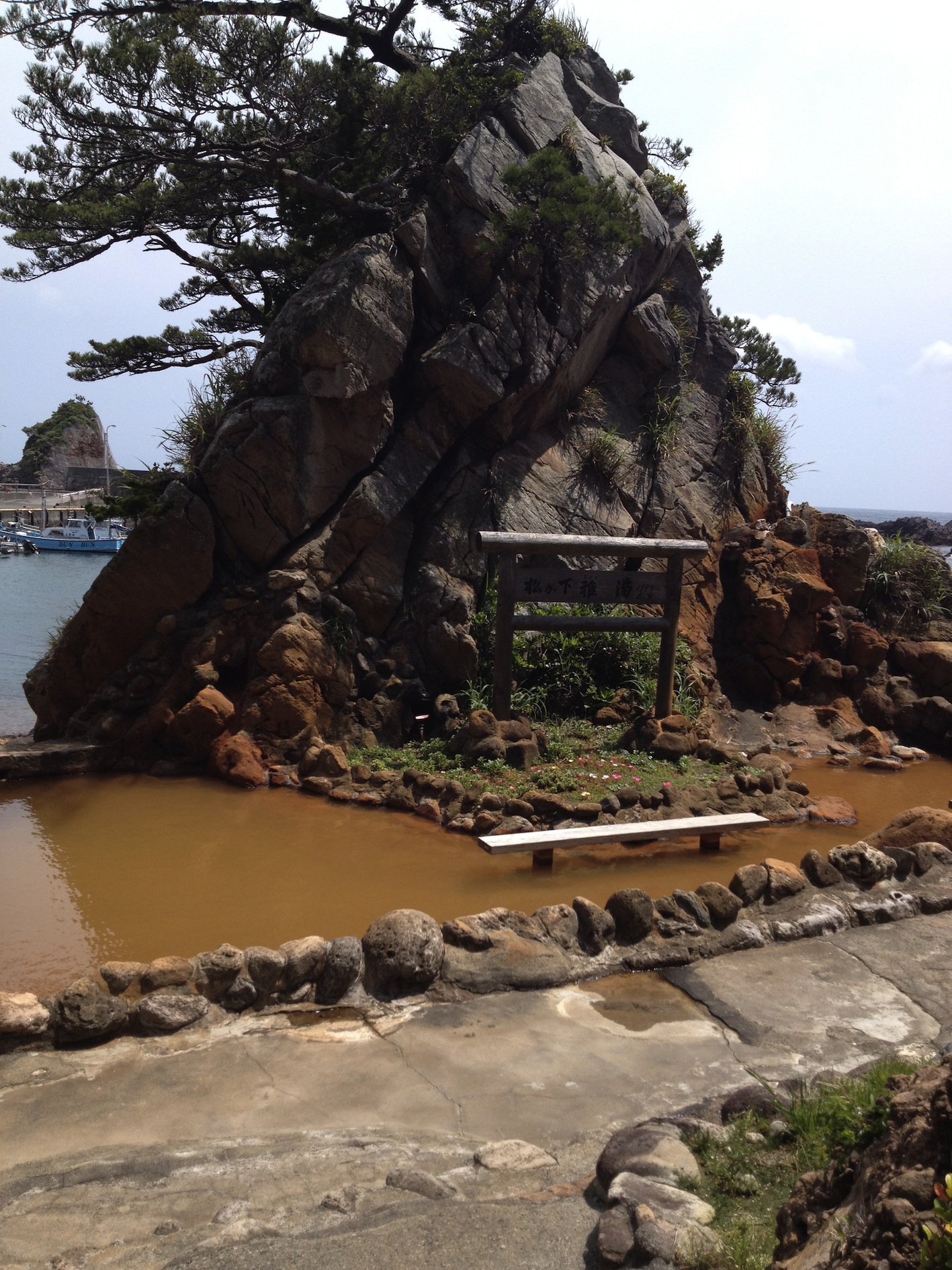 海中温泉なので、潮の満ち引きで出てくる。いったときは、お湯がなく残念だった。
